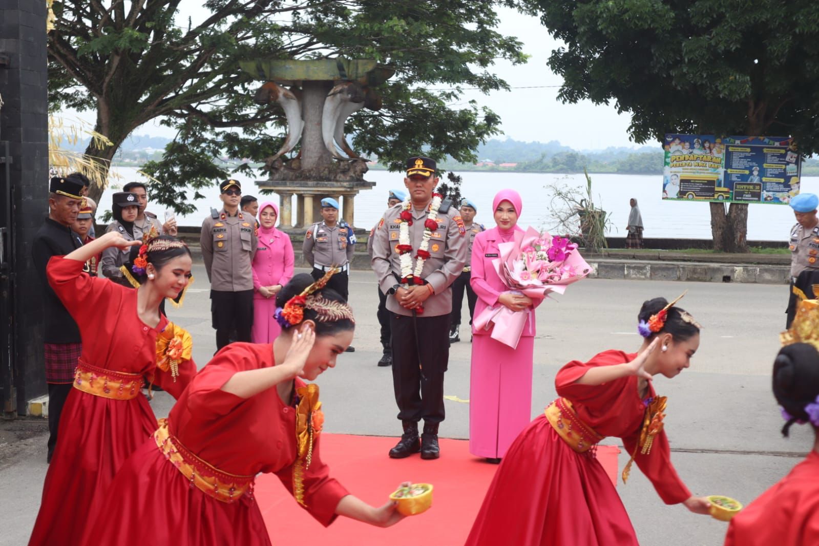 Selain itu, tarian selamat datang hingga barisan gerbang pora menambah semarak suasana. Serangkaian prosesi tersebut menandai penerimaan resmi pucuk pimpinan baru Polres Kukar di tengah tradisi budaya yang terus dijaga.