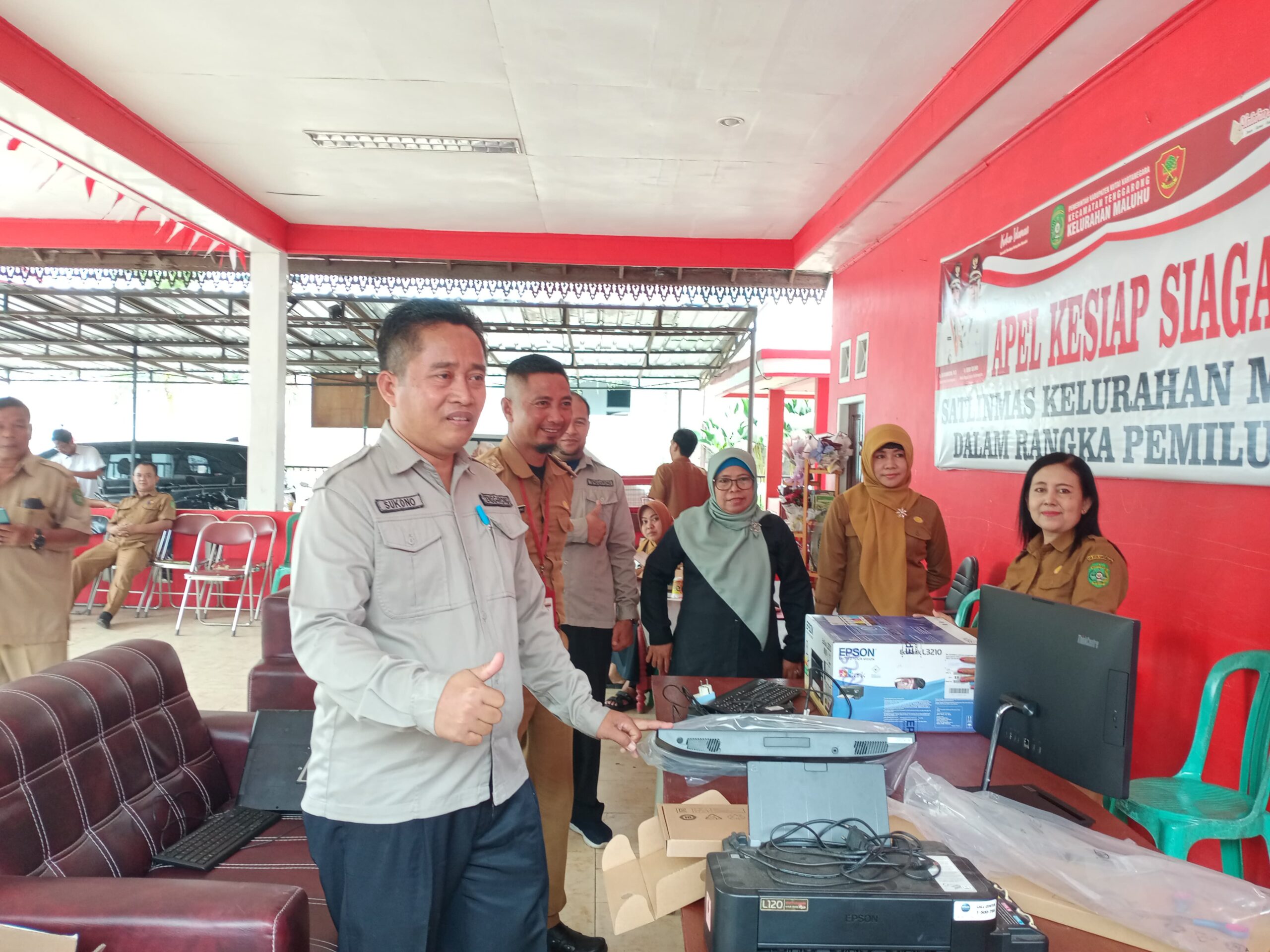 Teks Foto : Camat Tenggarong Sukono saat menyerahkan bantuan berupa perlengkapan kantor kepada Lurah Maluhu Tri Joko Kuncoro