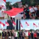 Pemkab Kukar Bersama Seluruh Elemen Masyarakat Bentangkan Bendera Merah Putih Sepanjang 250 Meter di Bundaran Tuah Himba Tengggarong