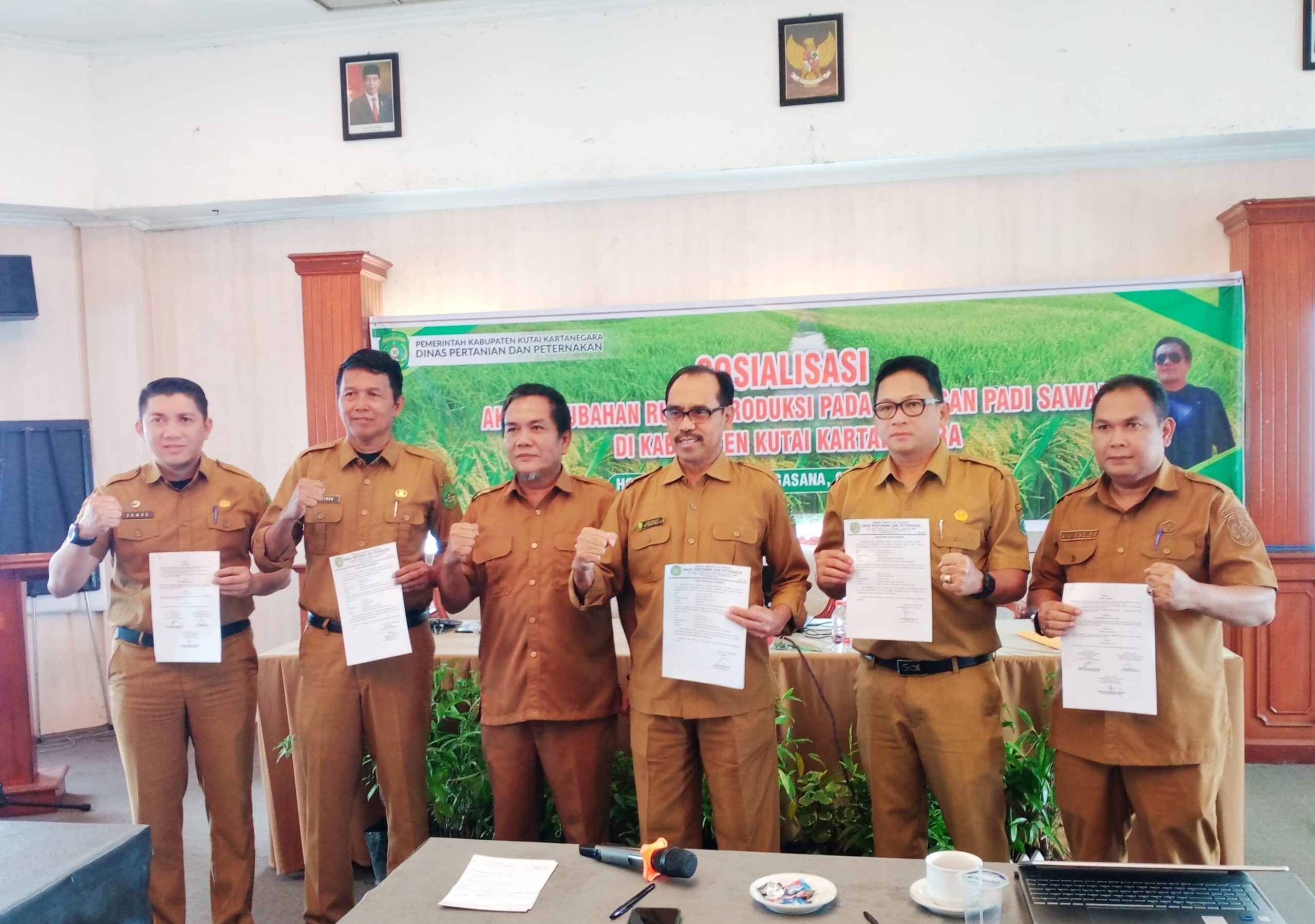 mediamahakam.com, KUTAI KARTANEGARA – Dinas Pertanian dan Peternakan (Distanak) Kabupaten Kutai Kartanegara (Kukar) menggelar sosialisasi sekaligus penandatanganan Memorandum of Understanding (MoU) Implementasi Aksi Perubahan Ruang Produksi Pada Kawasan Padi Sawah di Kabupaten Kukar (RAPAK KUKAR) dalam rangka meningkatkan produktivitas lahan pertanian di tiap daerah yang ada di Kukar, Selasa (1/10/2024).