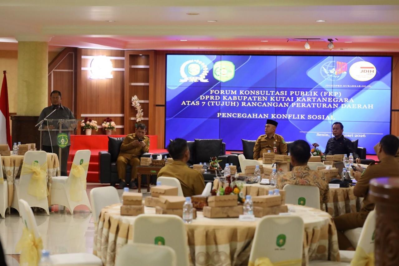 Mediamahakam.com, KUTAI KARTANEGARA – DPRD Kabupaten Kutai Kartanegara (Kukar) menggelar Forum Konsultasi Publik (FKP) untuk membahas tujuh Rancangan Peraturan Daerah (Raperda) sebagai upaya memperkuat kualitas regulasi daerah. Kegiatan ini dilaksanakan di Ruang Serbaguna DPRD Kukar, Senin (12/1/26), dengan melibatkan berbagai pemangku kepentingan.