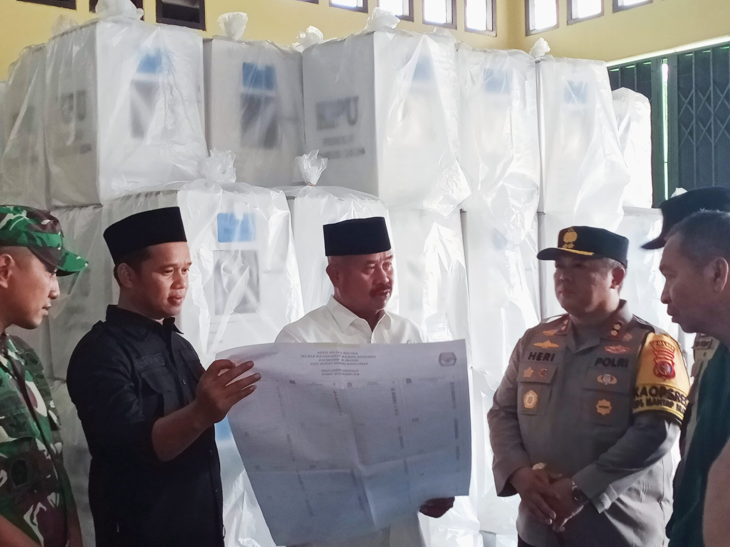 Bupati Kutai Kartanegara (Kukar), Edi Damansyah, didampingi langsung oleh Ketua KPU Kukar, Purnomo, Ketua Bawaslu Kukar, Teguh Wibowo, Kapolres Kukar, AKBP Heri Rusyaman dan Dandim0906/KKR, Letkol Inf Jeffrey Satria, bersama meninjau langsung persiapan distribusi kotak suara dan logistik di gudang logistik Komisi Pemilihan Umum (KPU) Kukar, Jum’at (02/02/2024).