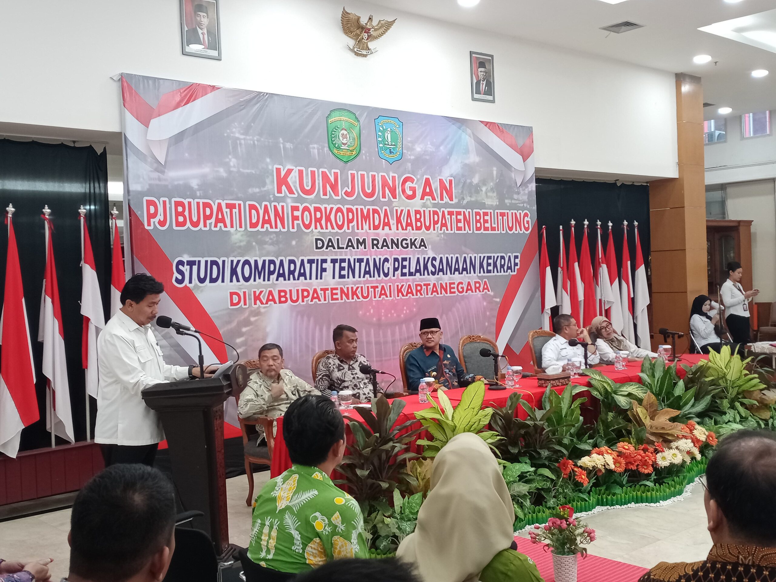 “Atas nama Pemkab Kukar, kami mengucapkan selamat datang kepada Pemkab Belitung di Tenggarong. Kami juga sampaikan terima kasih telah memilih Kukar sebagai referensi dalam kebijakan pembangunan ekonomi kreatif Kabupaten Belitung,” tutur Sunggono.