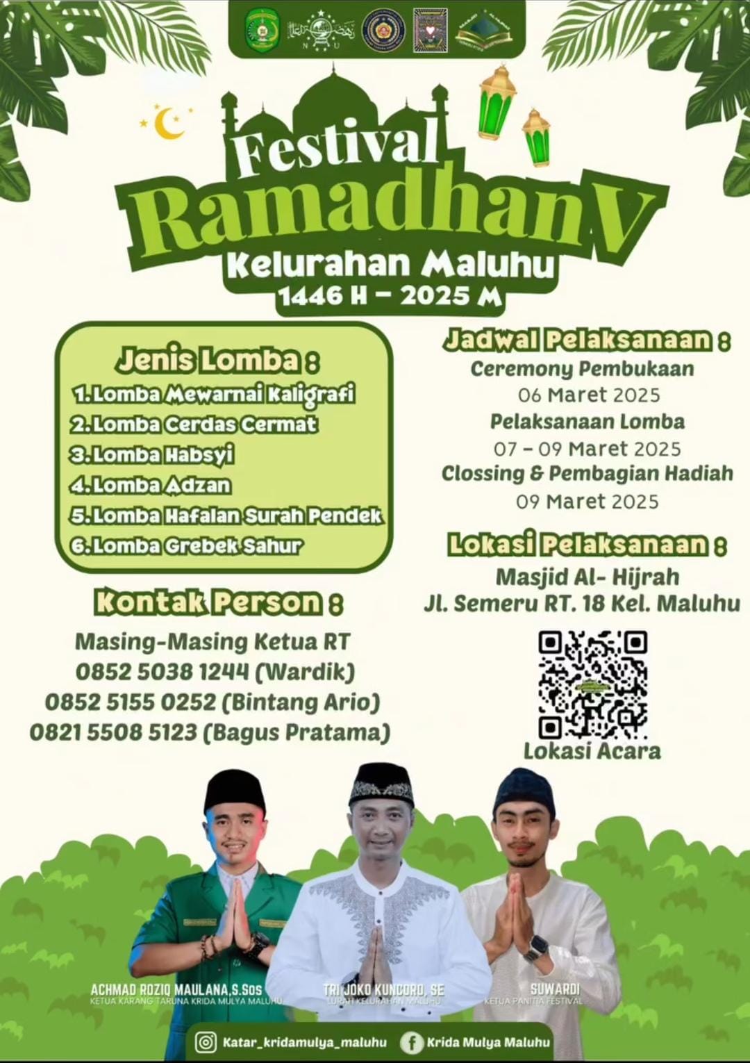 Tahun ini, Masjid Al Hijrah RT 18 menjadi tuan rumah, setelah sebelumnya diadakan di Masjid Miftahul Jannah RT 11 pada 2023 dan Masjid Al Musawaroh RT 8 pada 2024. Berbagai perlombaan Islami turut memeriahkan acara, seperti lomba hafalan surah, cerdas cermat, habsyi, serta kegiatan keagamaan lainnya.