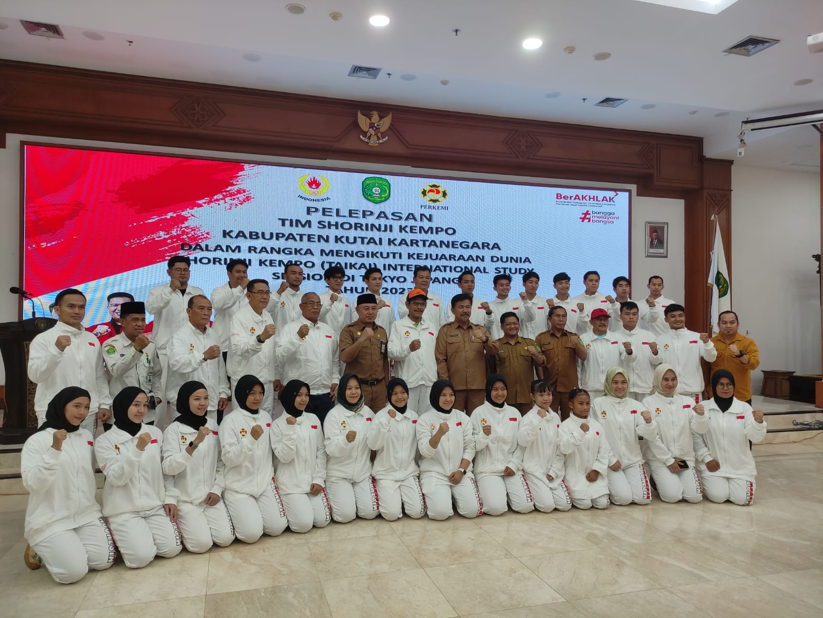 Pelepasan tersebut berlangsung di Gedung Serbaguna Pemkab Kukar, dengan dihadiri puluhan atlet dan jajaran pengurus Kempo Kukar, Selasa (3/10/2023).