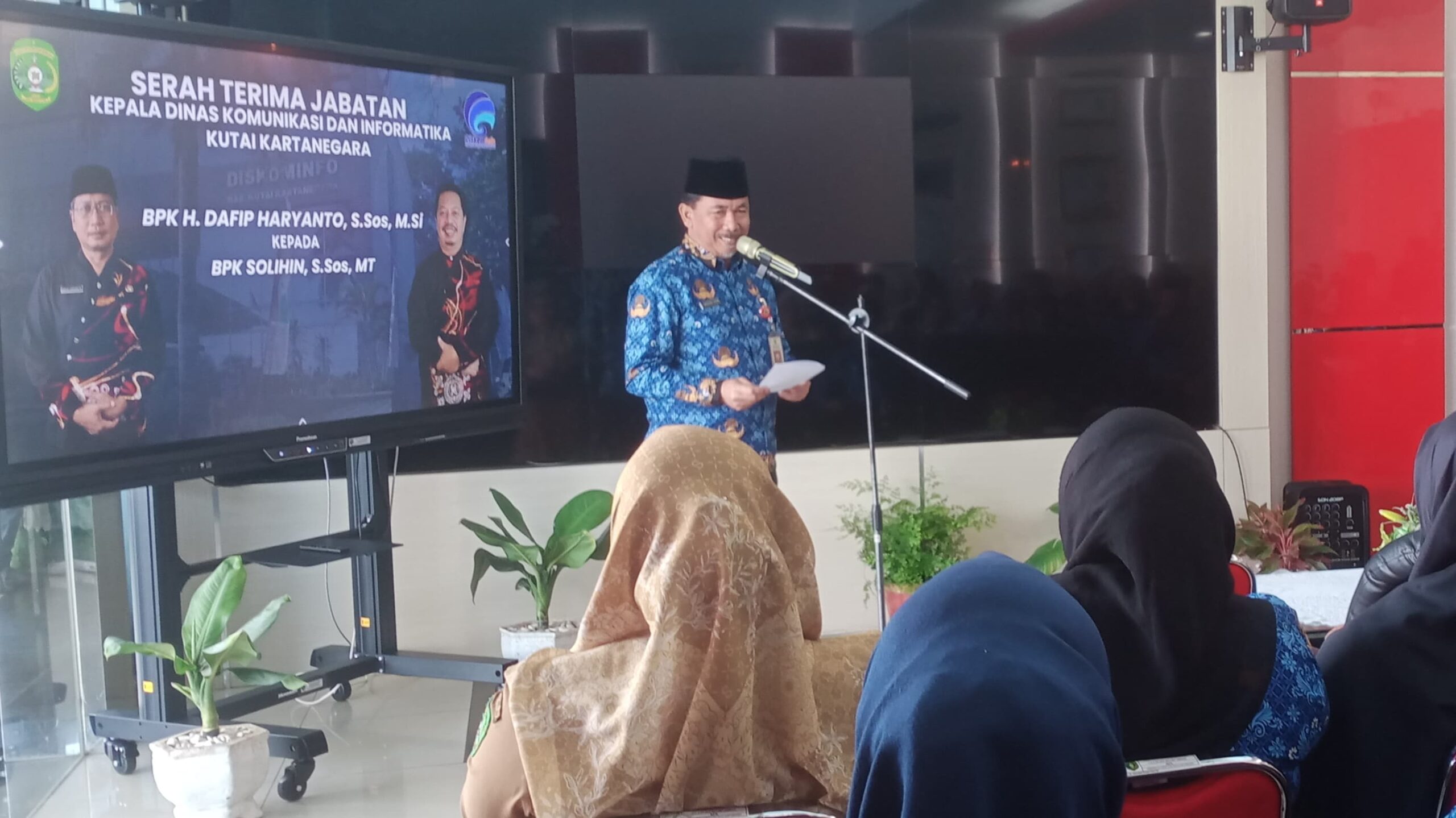 Pada acara yang digelar di lantai 1 kantor Diskominfo Kukar tersebut, posisi Kepala Dinas Diskominfo Kukar yang sebelumnya dijabat oleh Dafip Haryanto resmi diserahkan kepada Pelaksana Tugas yang baru yakni Solihin, yang sebelumnya merupakan Sekretaris Diskominfo Kukar. Serah terima jabatan ini juga disaksikan langsung oleh Sekretaris Daerah (Sekda) Kukar, Sunggono.