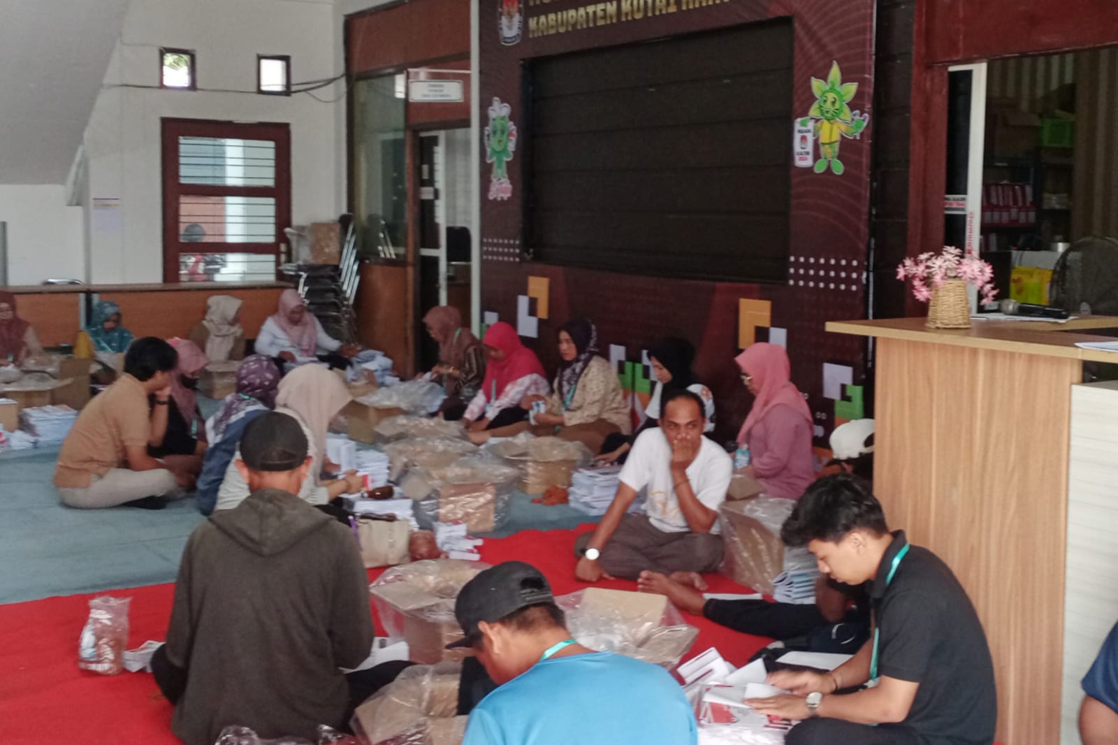 Teks Foto : Suasana proses sortir dan lipat surat suara untuk Pilkada 2024 di kantor KPU Kukar. (Rizka/Media Mahakam)