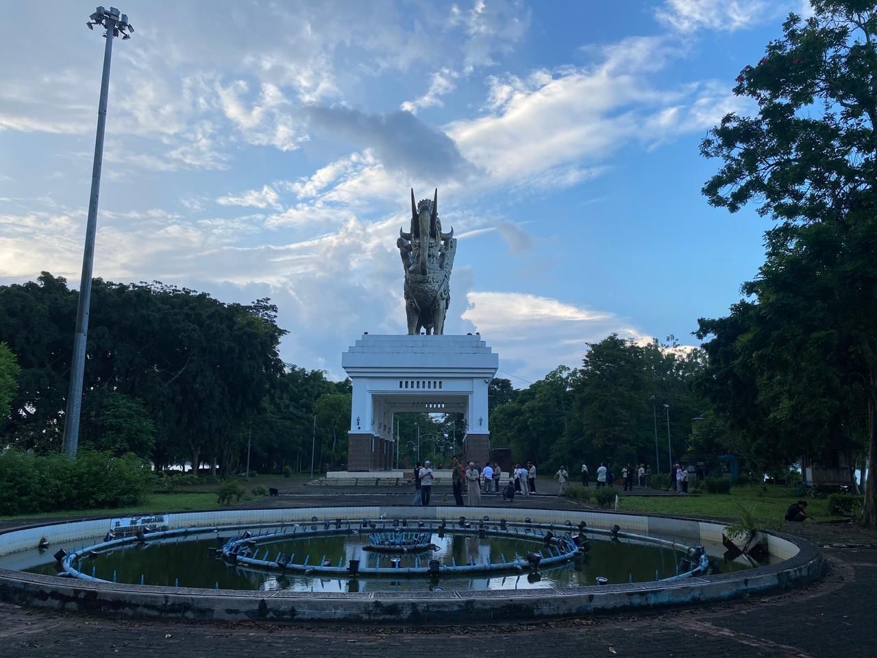 Teks : Salah satu tempat ikonik patung naga di Pulau Kumala Tenggarong.