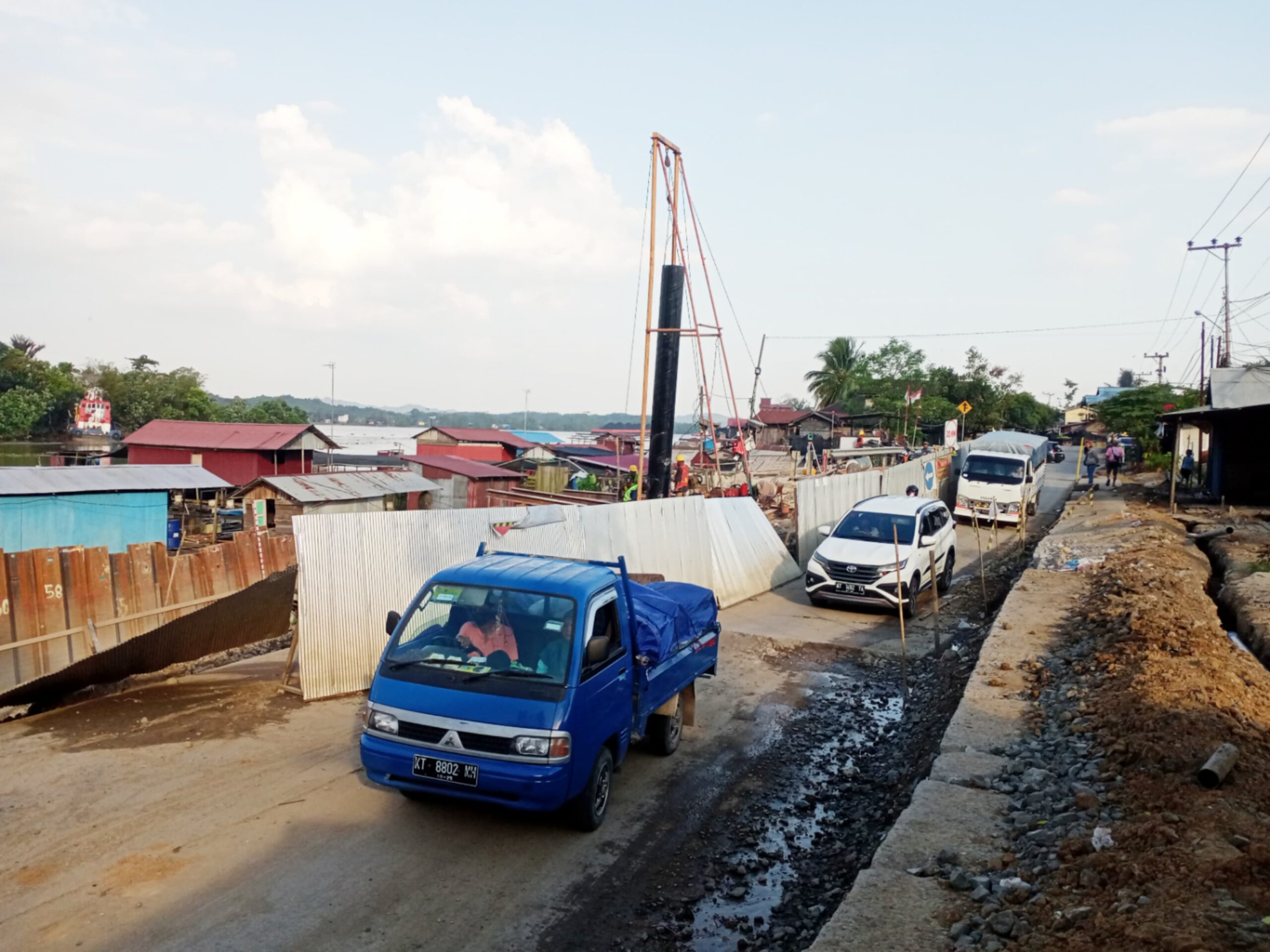 “Kita sudah melaksanakan pemasangan tiang pancang sepanjang 63 meter, tapi akibat volume kendaraan yang melintas tidak berkurang sama sekali, kondisi jalan ini jadi semakin turun,” ungkapnya.