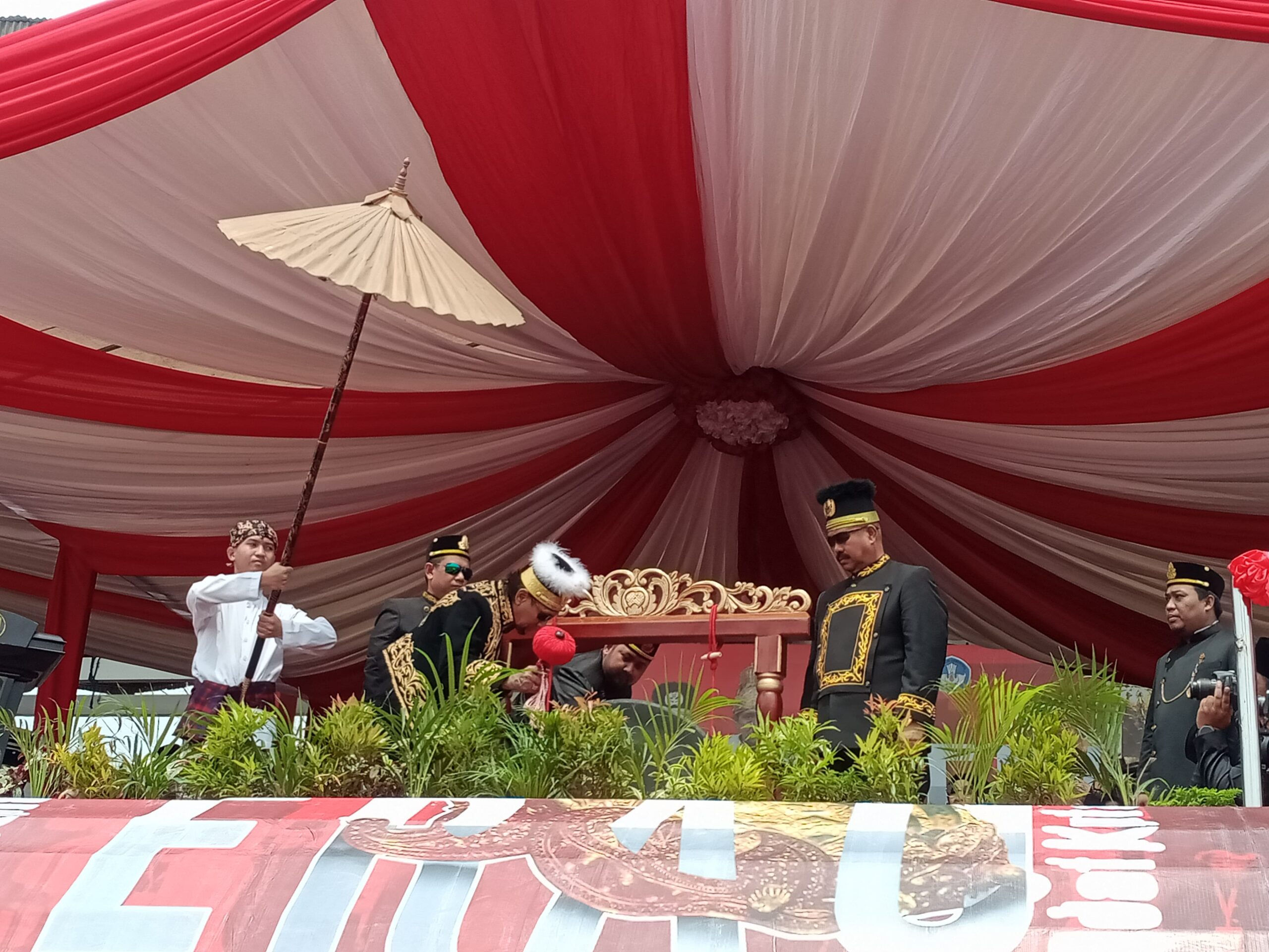 “Kepada seluruh tamu undangan, para peserta, dan seluruh masyarakat yang hadir, silahkan dinikmati dengan riang gembira Erau ini, tetapi jangan lupa jaga keamanan dan ketertiban, kondusifitas daerah.