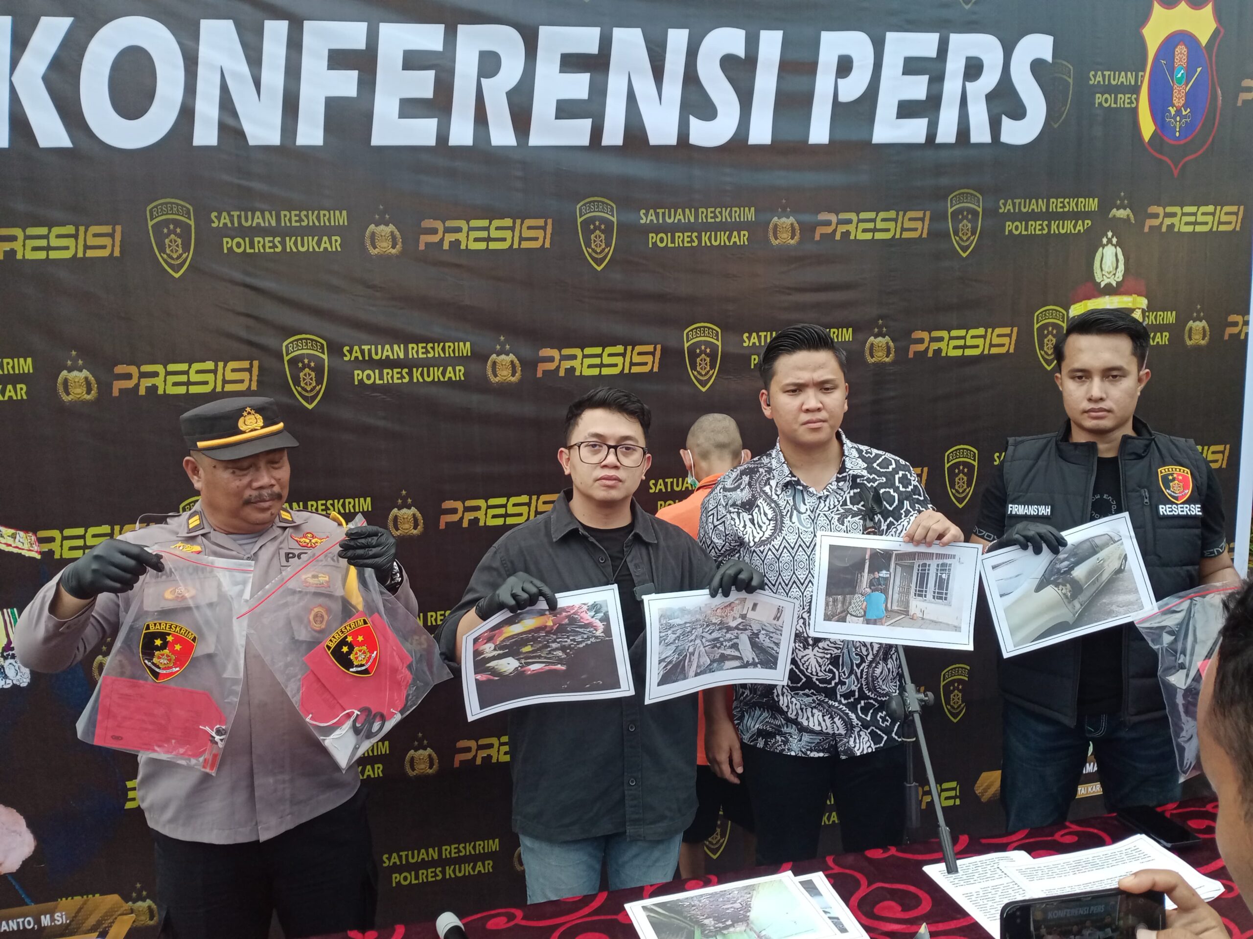 Teks Foto : Konferensi pers kasus pembakaran rumah di jalan Gunung Belah Tenggarong (Rizka/Media Mahakam)