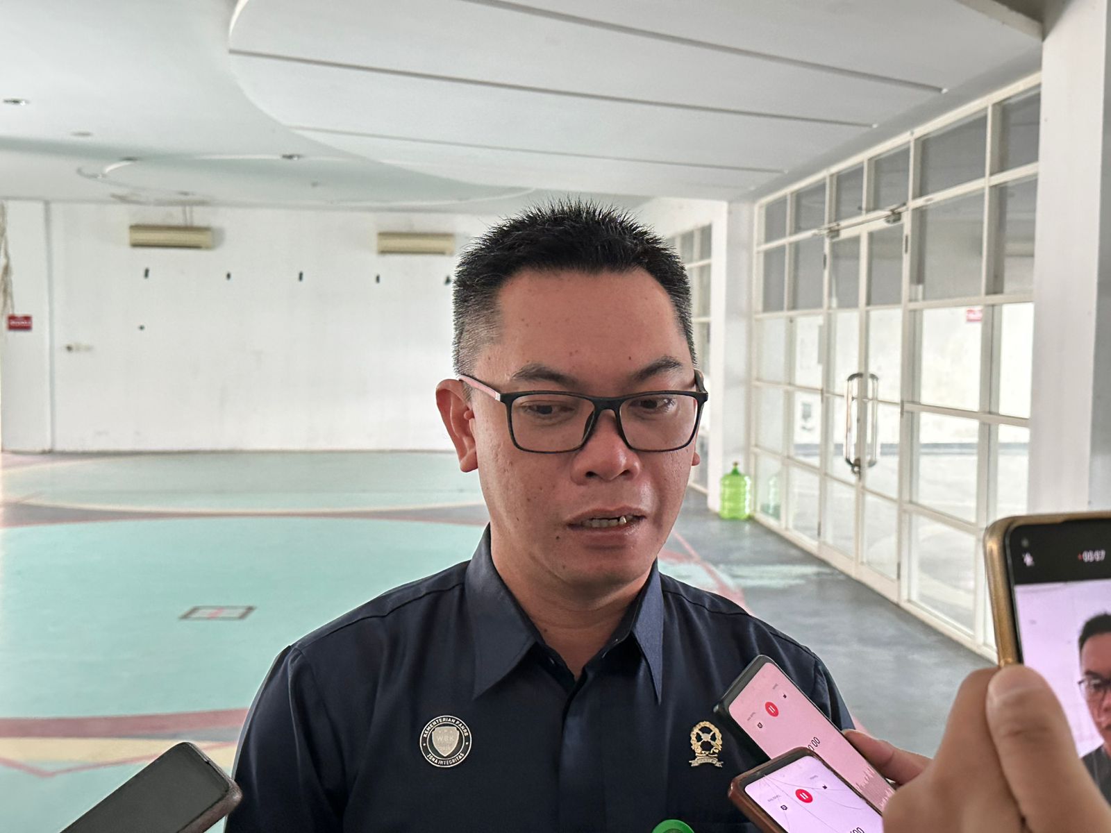 Teks foto: Samsul Bahri saat di wawancarai oleh awak media (fadoli/media mahakam.com)