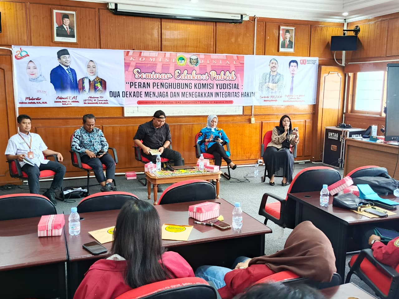Samarinda (Komisi Yudisial) – Penghubung Komisi Yudisial (KY) Kalimantan Timur (Kaltim) mengadakan Seminar Edukasi Publik Bersama dengan mahasiwa, praktisi hokum, akademisi, dan NGO untuk menjaring partisipasi aktif masyarakat dalam mewujudkan peradilan bersih, Selasa 12 Agustus 2025 di Universitas 17 Agustus 1945, Samarinda Kaltim. Acara tersebut adalah rangkaian kegiatan seminar edukasi public dalam rangka HUT KY ke-20 dengan tema “Peran Penghubung Komisi Yudisial: Dua Dekade Menjaga dan Menegakkan Integritas Hakim “.