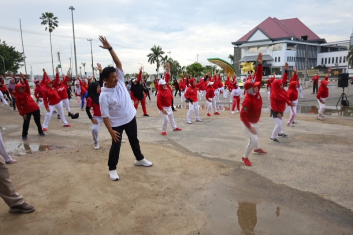 Teks Foto : Sekda Kukar Sunggono saat mengikuti acara senam jantung sehat peringatan Hari Hipertensi Sedunia (Istimewa)