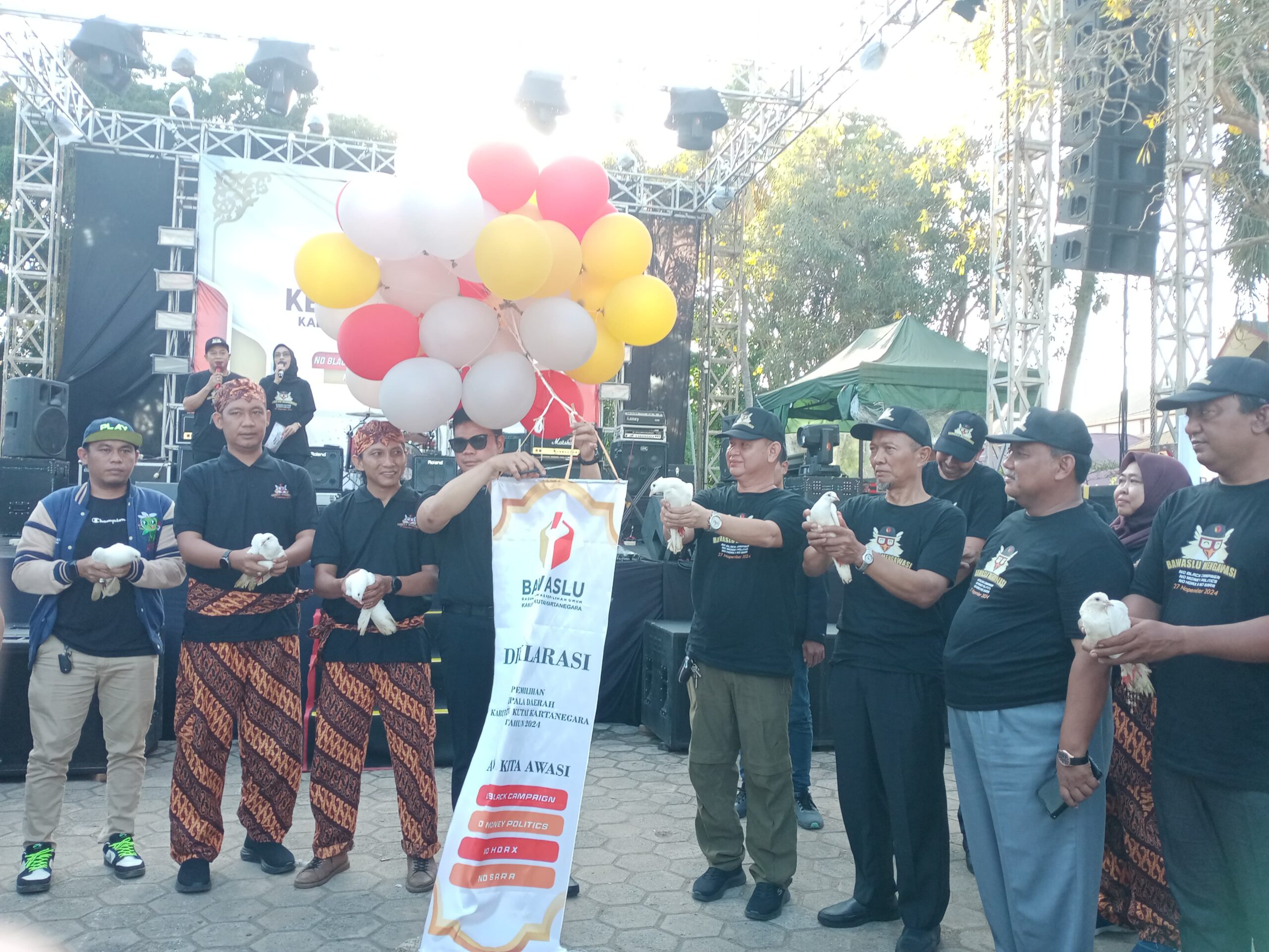 Sosialisasi yang diinisiasi oleh Badan Pengawas Pemilu (Bawaslu) Kabupaten Kukar itu resmi dibuka dengan penandatanganan deklarasi “No Black Campaign, No Money Politics, No Hoax And No Sara” oleh Pemkab Kukar, Bawaslu, KPU Kukar dan Tim Sukses dari tiga pasangan calon Kepala Daerah Kukar. Serta pelepasan balon helium dan beberapa ekor burung dara.