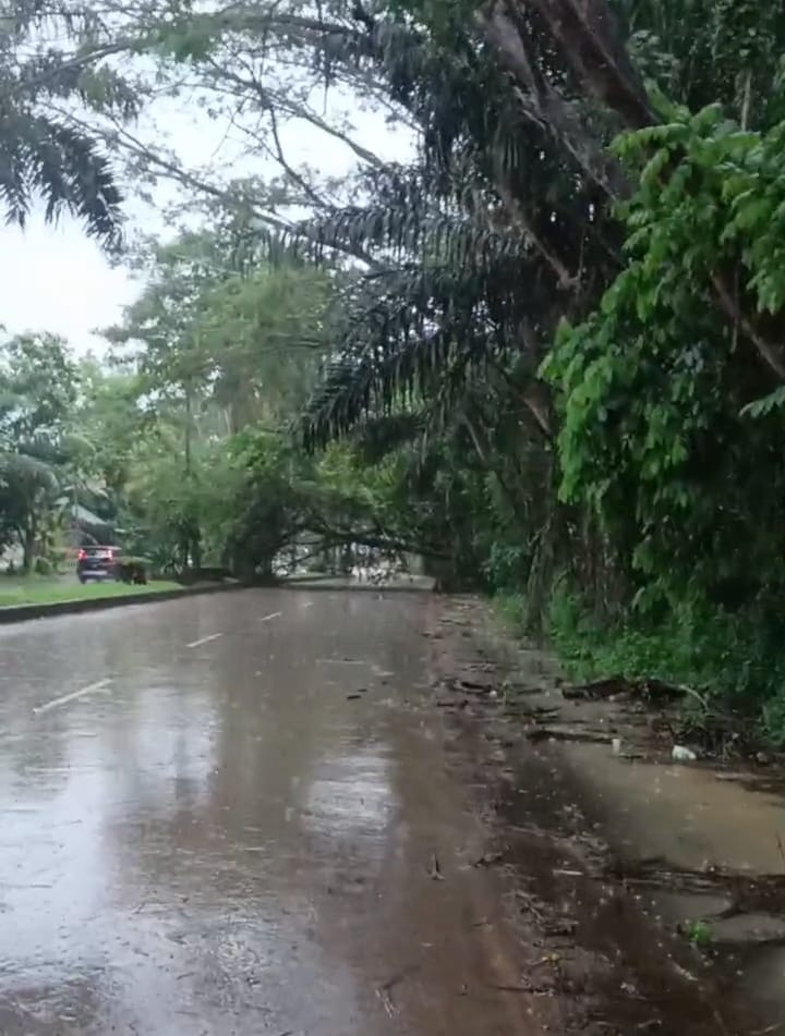 Kutai Kartanegara – Hujan deras yang mengguyur wilayah Kutai Kartanegara mengakibatkan sejumlah pohon tumbang, salah satunya terjadi di jalur dua, Kilometer 7, ruas jalan Samarinda-Tenggarong, Senin (27/5/2025).