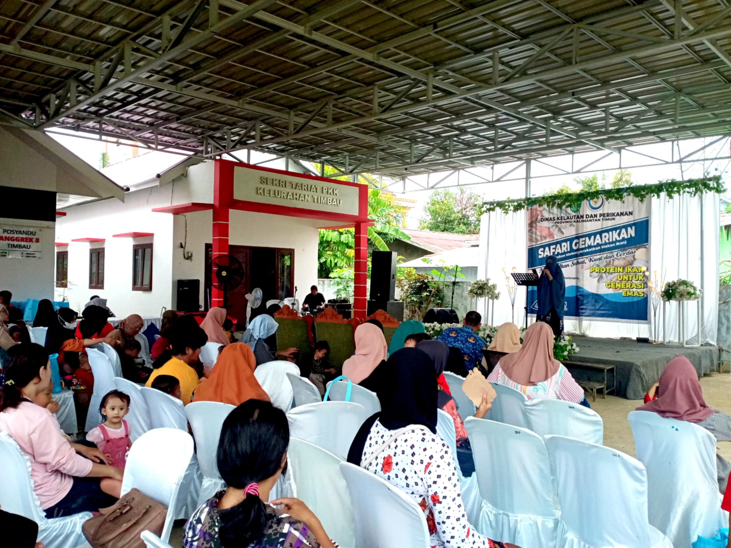 Kegiatan yang berlangsung di halaman depan Posyandu Anggrek 8, Jalan Arwana, Blok F, RT 16, Kelurahan Timbau, Kecamatan Tenggarong, Kabupaten Kutai Kartanegara (Kukar) Kamis, (17/10/2024) itu turut di hadiri oleh Dinas Kelautan dan Perikanan Kabupaten Kukar, sejumlah OPD terkait, serta kurang lebih 100 peserta yang merupakan perwakilan dari 12 Posyandu yang ada di Kelurahan Timbau.