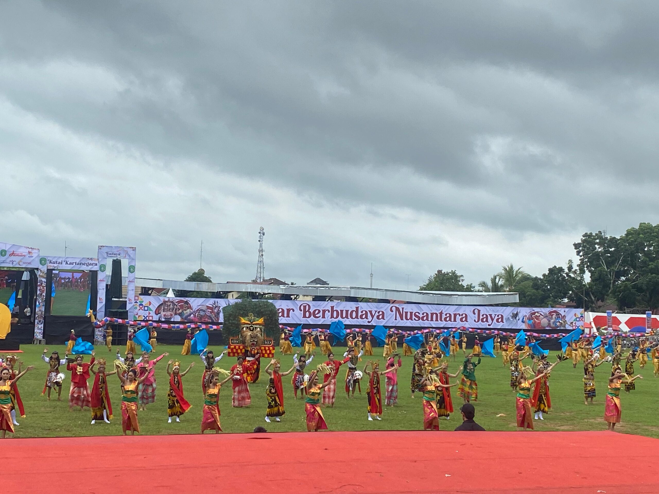 Teks Foto : Penampilan tari masal di pembukaan Kukar Festival Budaya Nusantara tahun 2024. (Rizka/Media Mahakam)