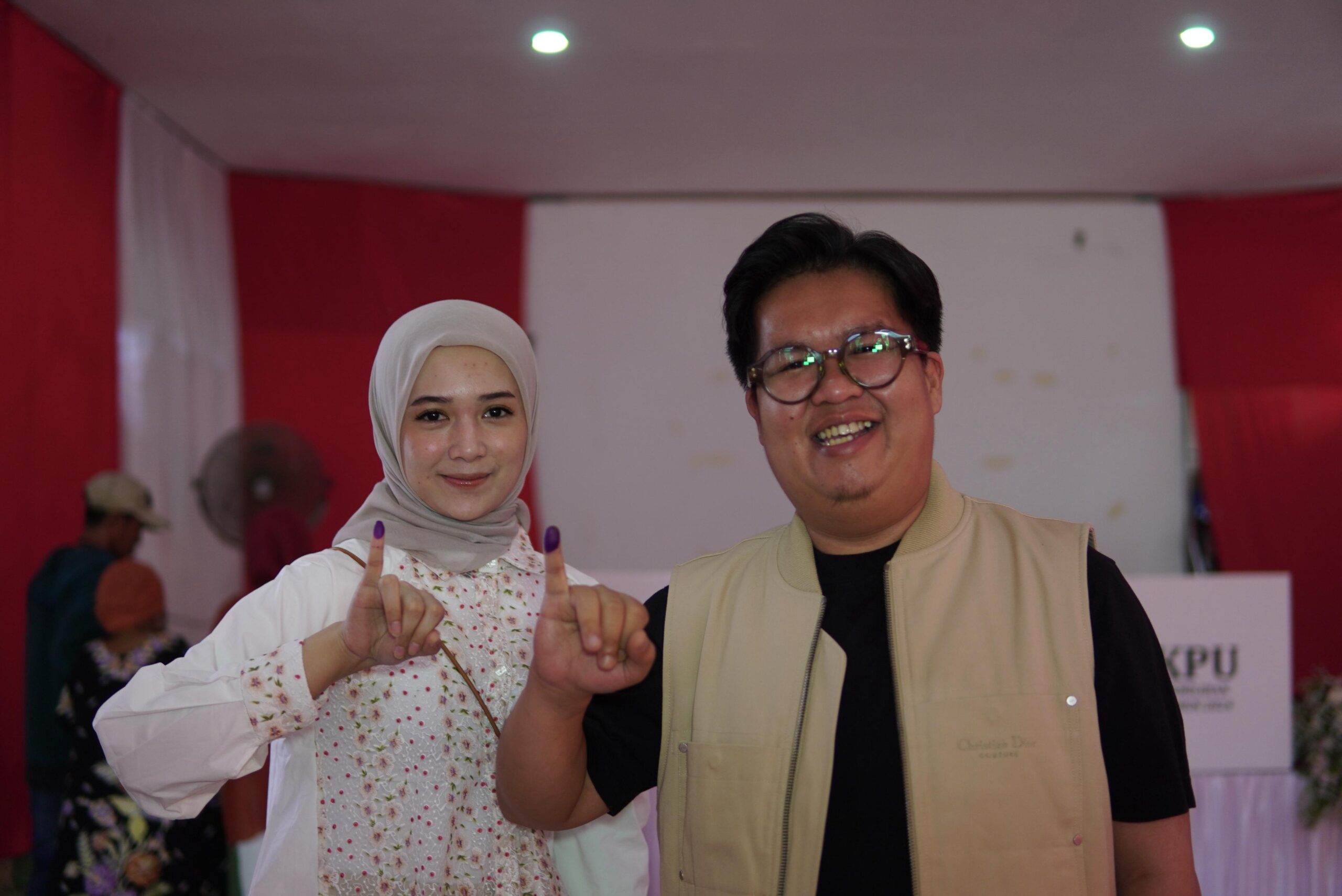 Rendi mencoblos di TPS 008, Kelurahan Kuala Samboja, Kecamatan Samboja, bersama sang istri.