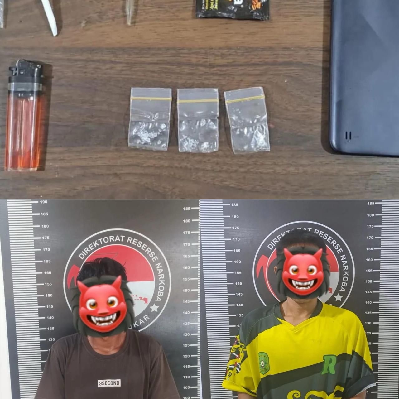 teks : Dua tersangka dan barang bukti kasus peredaran narkotika. (Dok. Polres Kukar/Istimewa)