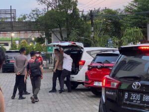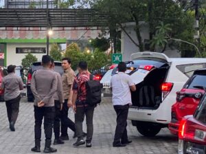 Penyidik KPK keluar pukul 20.00 WITA melalui pintu samping dan langsung menaiki kendaraan yang dikawal patroli kepolisian. (pep)