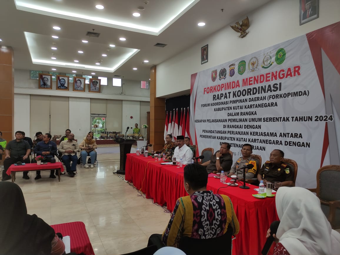 Rapat ini di pimpin langsung oleh Bupati Kutai Kartanegara, Edi Damansyah dan membahas tentang persiapan menjelang pemilihan umum serentak yang akan diadakan pada tanggal 14 Februari 2024 mendatang khususnya yang berkaitan dengan DPTb dan hak pemilih di Tempat Pemungutan Suara (TPS).