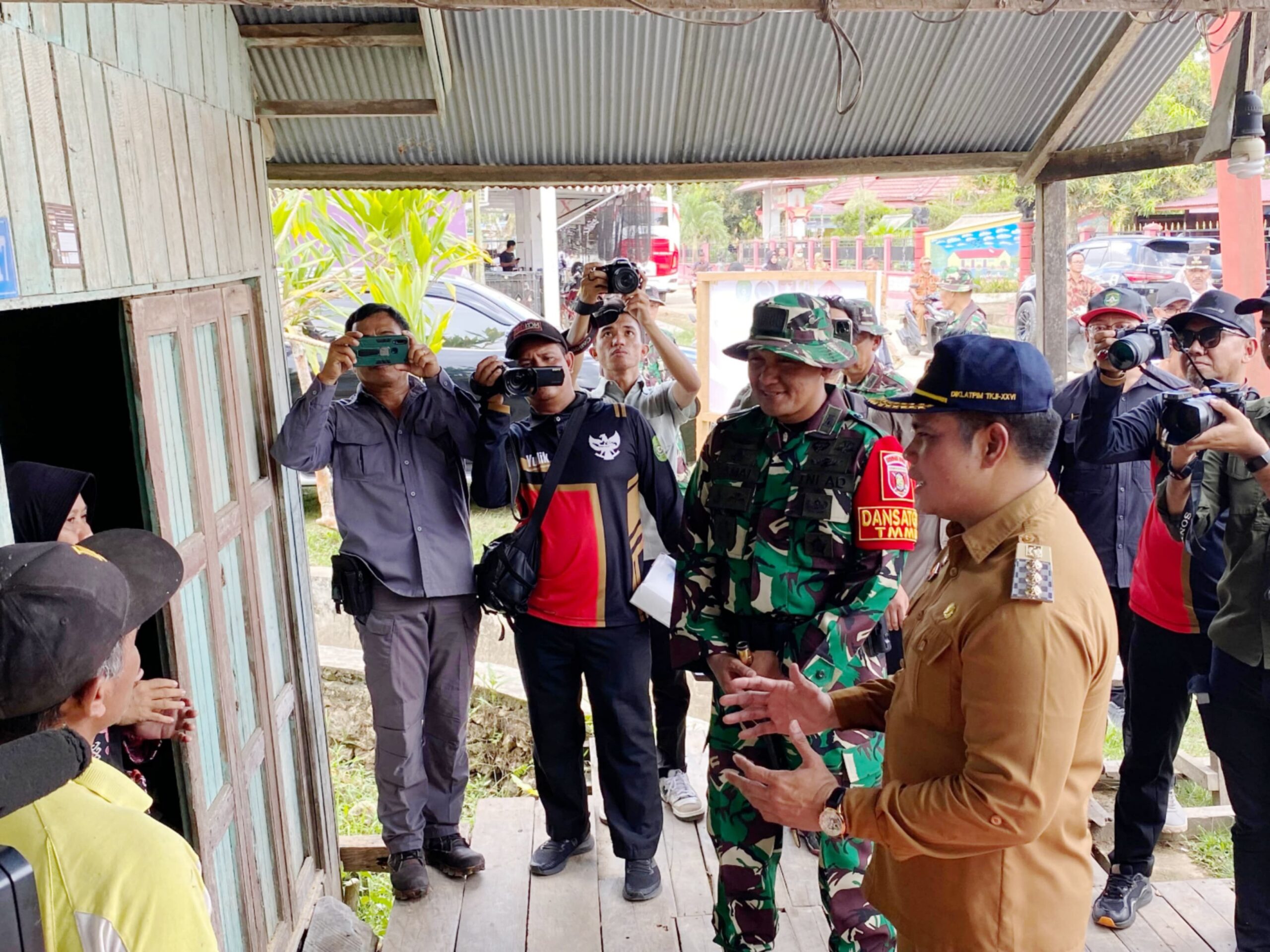 Teks Foto : Pjs Bupati Kukar bersama Kodim 0906/KKR saat melakukan peninjauan rumah warga penerima program RLTH. (Rizka/Media Mahakam)